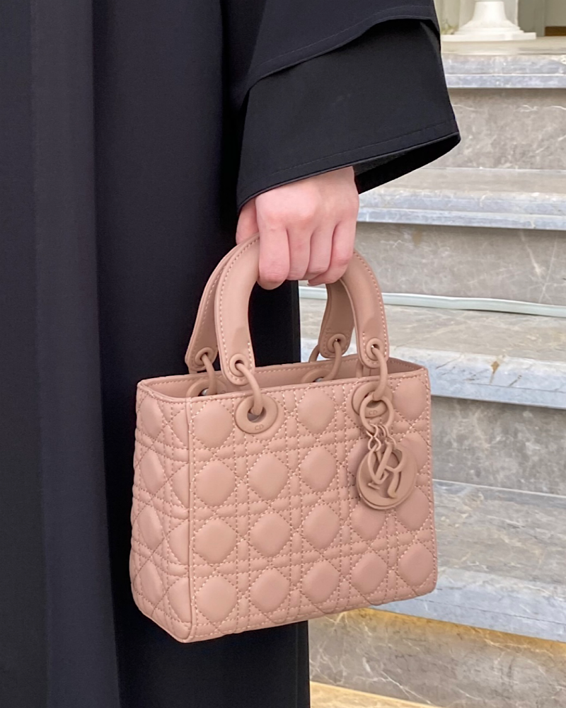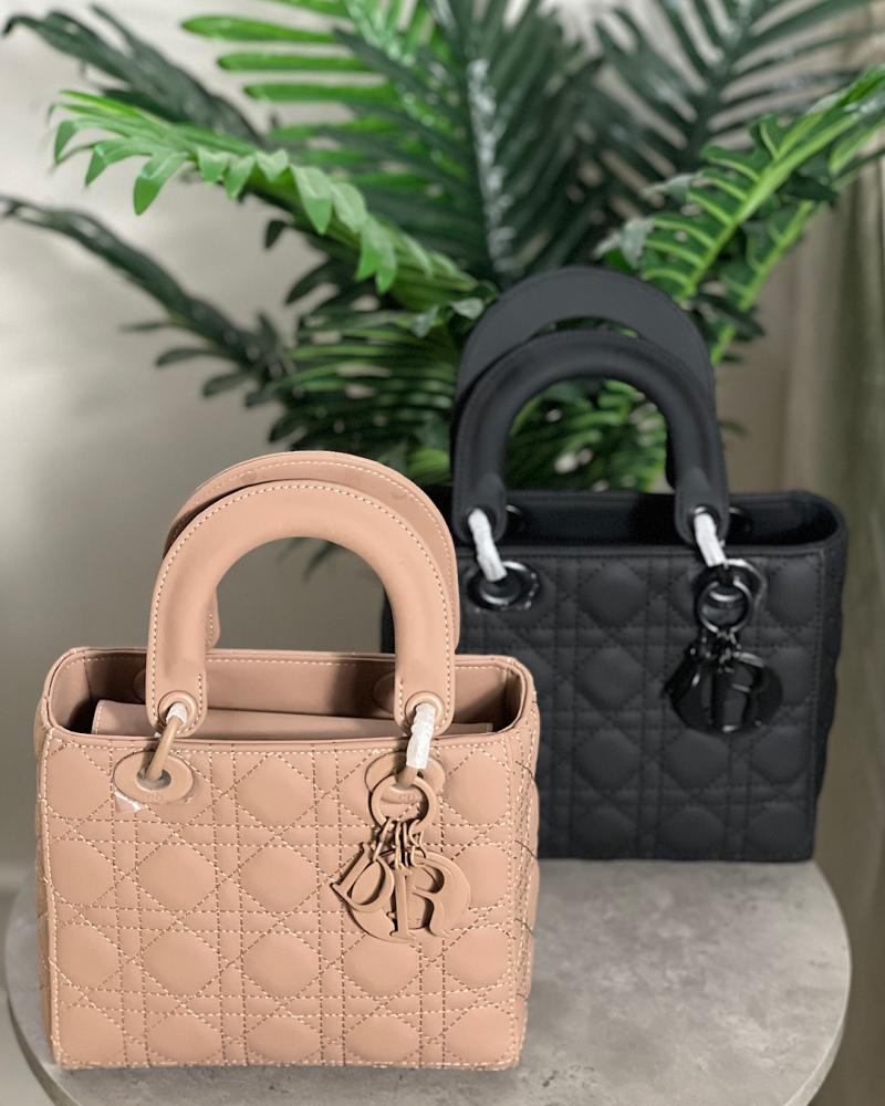 شنطة ديور باللون الاسود واللون الوردي